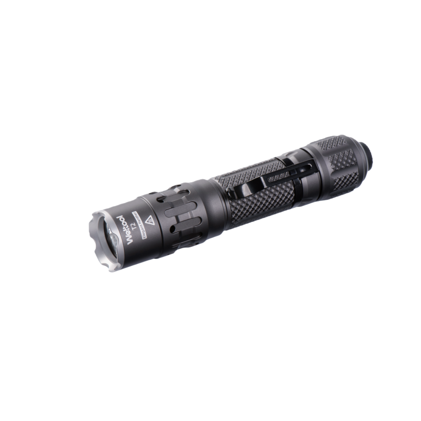 The T2 is a compact and portable LED flashlight powered by one 18650 lithium-ion battery or two CR123A batteries. It delivers a maximum output of 2,090 lumens, 51,000 candela, and a beam distance of 451 meters. The flashlight offers three modes: Low-High-Full power.The head features Weltool’s patented Through-Hole Cooling structure, which allows heat generated by the LED and electronic components to be efficiently dissipated through air convection.The T2 has mode memory, as well as reverse polarity protection, low-voltage warning, and over-discharge protection.